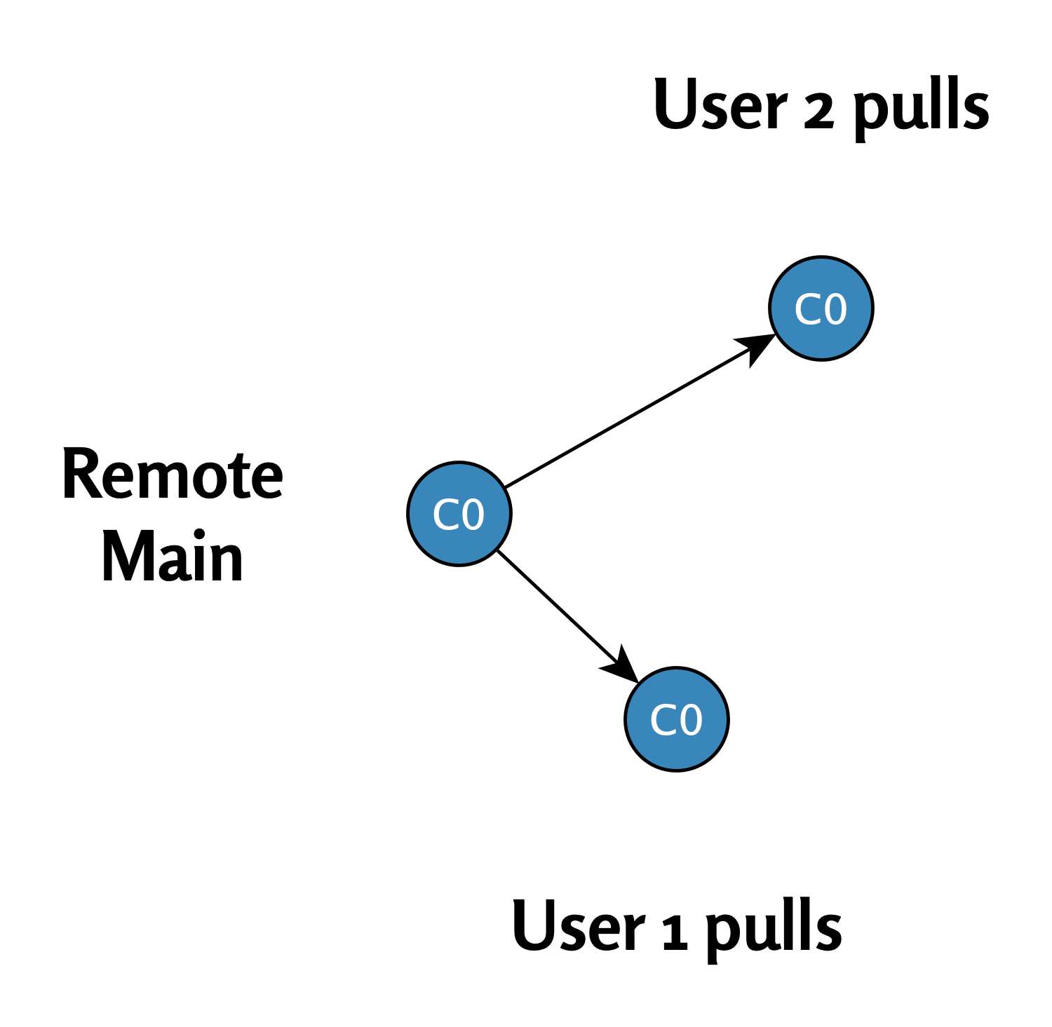 Both users start the project from the same initial state. They execute a pull command and update their local repositories to commit state C0.