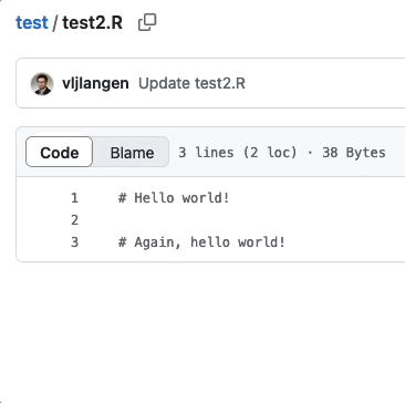 User 2 can now verify that their modified file test2 copy.R appears in the remote repository:
